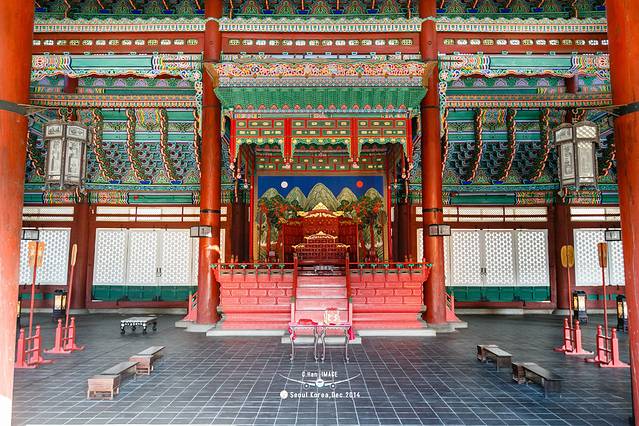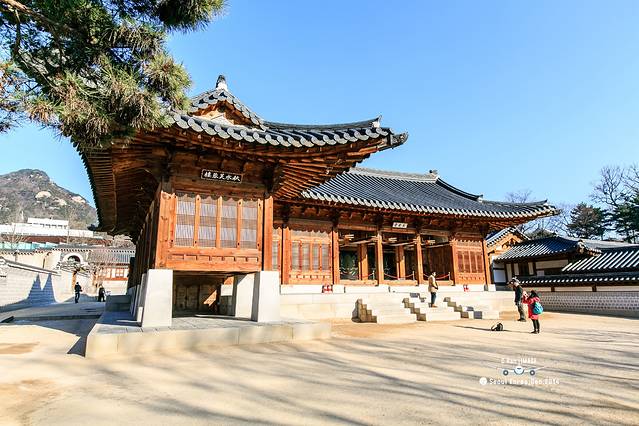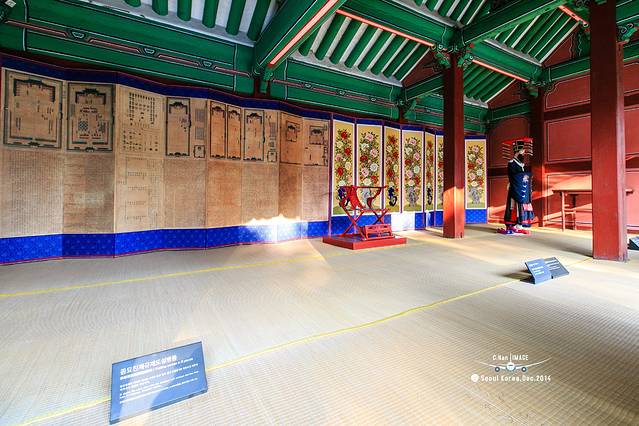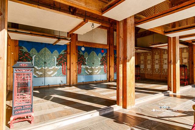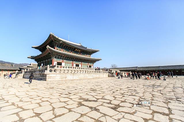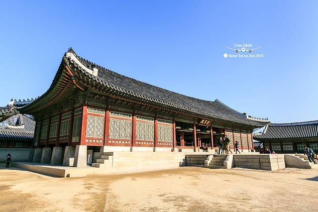 穿过勤政门就是景福宫的正殿-勤政殿。是韩国古代最大的木结构建筑物,最雄伟壮丽,是举行正式仪式以及接受百官朝会的大殿。