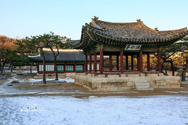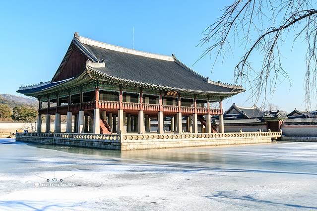 庆会楼,建于一个巨大的人工池塘之上。在景福宫里我最喜欢的地方。景色非常漂亮,尽管是冬天,也不失它的魅力。是国家每逢喜事时或迎接外交使节时举行宴会的地方,据讲解员说,这里还是唱戏的地方。