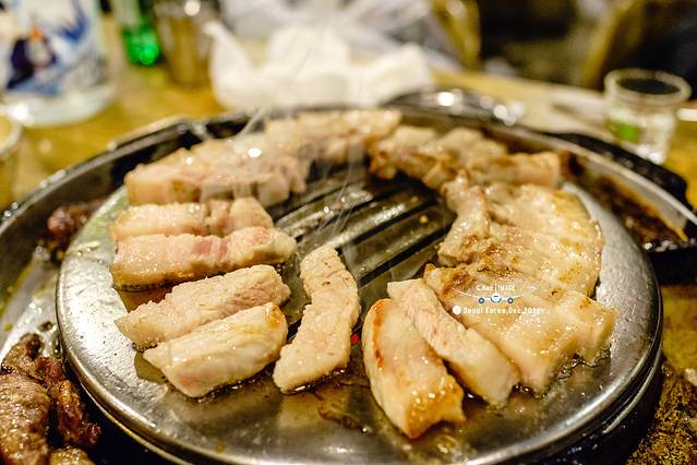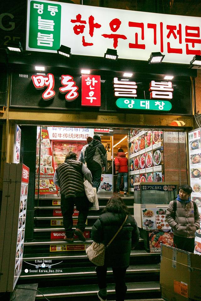 饿了一天了,该正式吃一顿韩餐了,当然离不开烤肉。本来想在东大门那家店吃,怎奈没有找到,误打误撞的看到了明洞这家,赶快的进门吃吧!