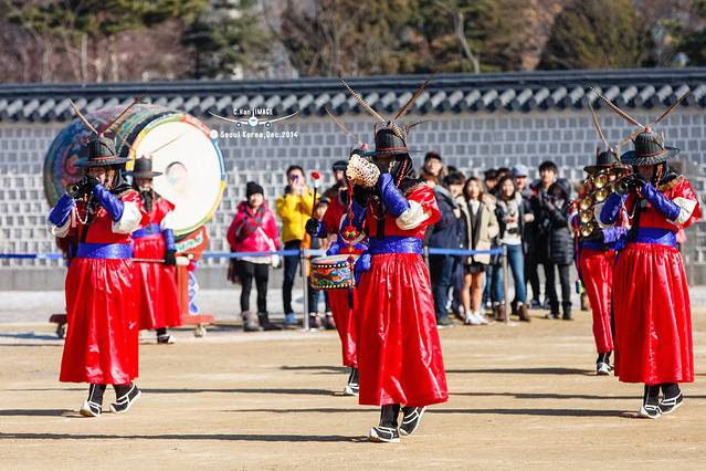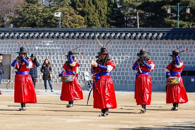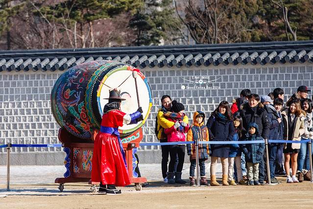 知道14点光化门要举行守卫换岗仪式,所以赶在这时间前就到了。终于看到了熟悉的画面了,大家的游记中很多都是已这个为背景的,所以感觉故地重游。