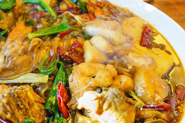 【元祖安东炖鸡】也算是明洞有名的。排队啊排队,等到了让上3楼。一看,哇塞,席地而坐,第一感觉,好在是冬天,这要是夏天,这屋子里别说吃饭了,就是呆上一会还能呆吗???