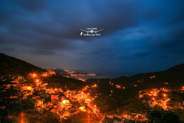 九份的夜景在很多游记中都看到过,一直都想亲眼看到底有多美。幽静的小镇的没有大城市的景观灯,都是一盏盏路灯和住户家用灯光,星星点点的把小镇灯亮,映着天空和海水,显得小镇格外的安静。