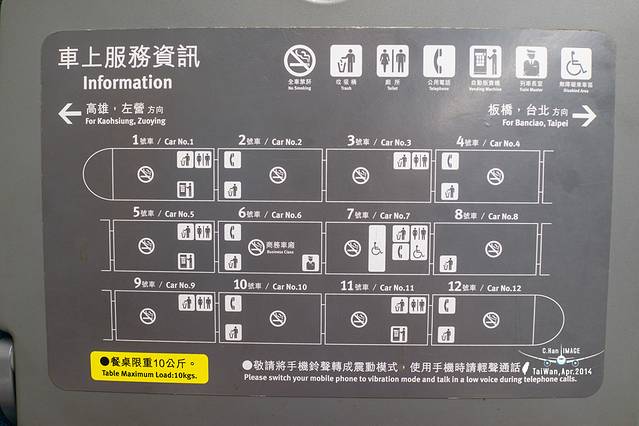 一大早吃过早饭,坐捷运到台北车站,换成到高雄的高铁。台湾高铁是可以在其官网提前预定,并可以享受早鸟票。大家可以定自由座就可以,价格便宜而且当天有效,搭乘任何一趟均可以。在台北车站,首先要到自动柜员机取网上的车票,按照指路牌的指引,可以很轻松的找到高铁的位置,就来到了高铁的月台上。