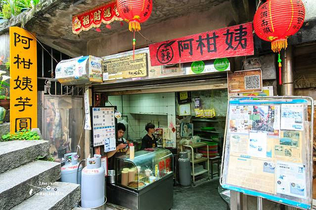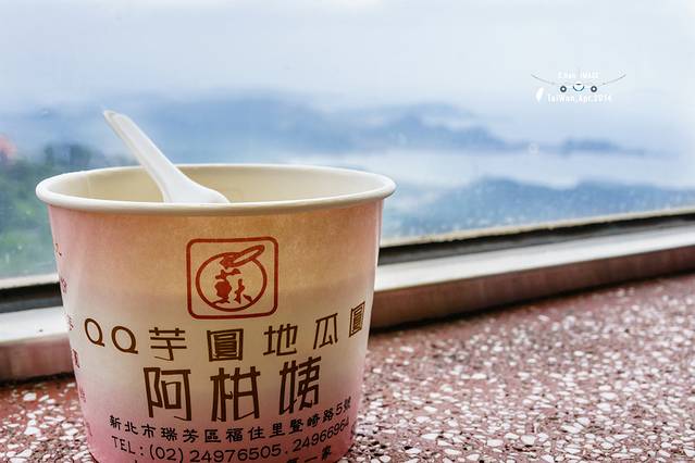 九份比较有名的就是阿柑姨芋圆了,我不是很爱吃芋圆。但是,吃着芋圆看着外面的景色,确实心情不错。