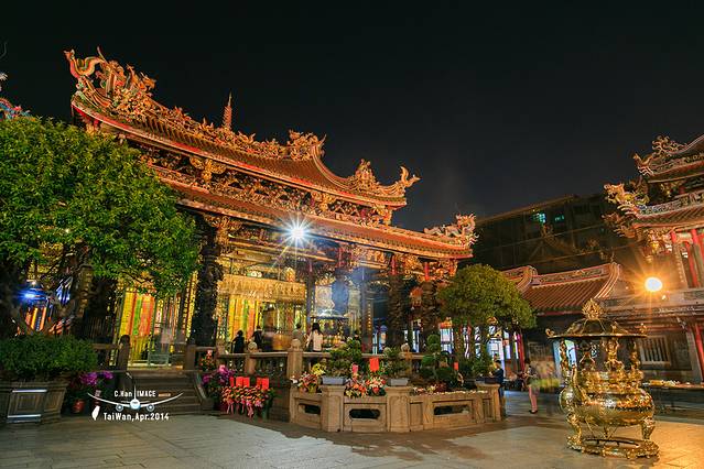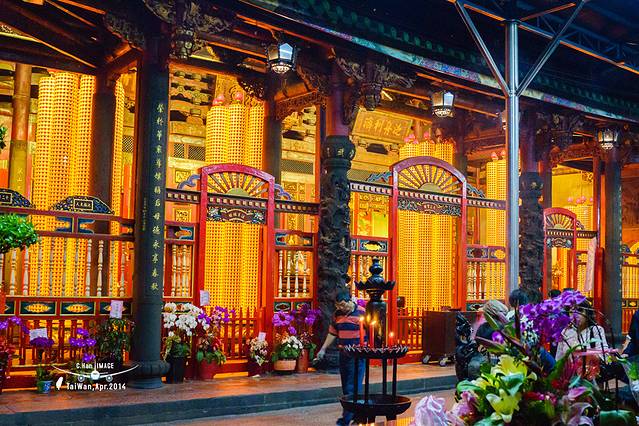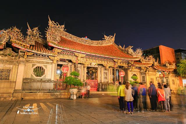 顺着Google地图的指引,走了大概15分钟,就看到了台北的龙山寺。哇,这个是原本没有打算来的地方,寺里还可以进。按照我的旅游习惯,逢寺必进逢塔必登。说龙山寺是台北香火最旺的寺庙,龙山寺主殿虽供奉观音,但在主殿後却祀奉天上圣母妈祖,这与福建寺庙布局类似,并且建筑风格也是基本一致的。