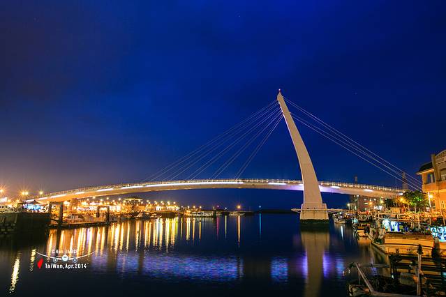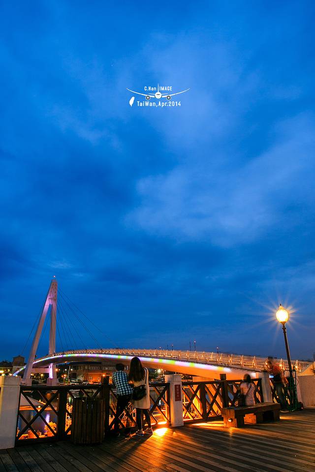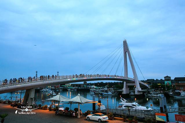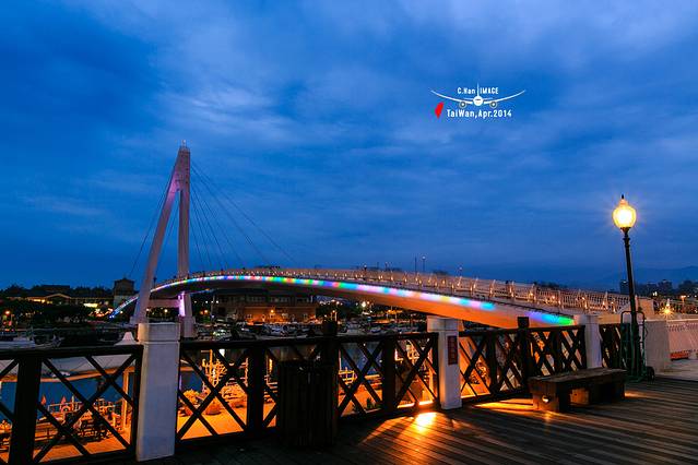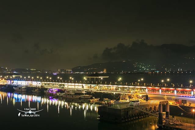 在淡水,渔人码头旁,凭海临风,等待夜灯初放;