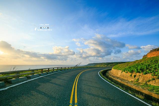 太阳就这样,一眨眼间就挂在了太平洋的天空上,骑上车边玩边拍,记录下垦丁美丽的早上。阳光洒在公路上,通透天空,白云朵朵……