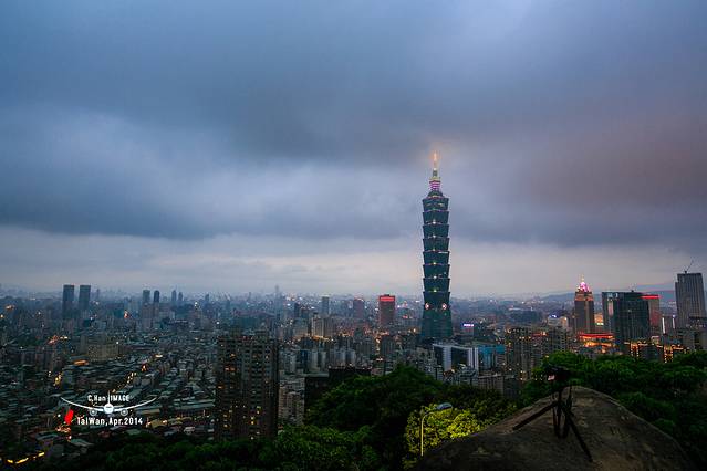 在台北,站在象山六巨石上,一览无余欣赏着台北的旧貌新颜;