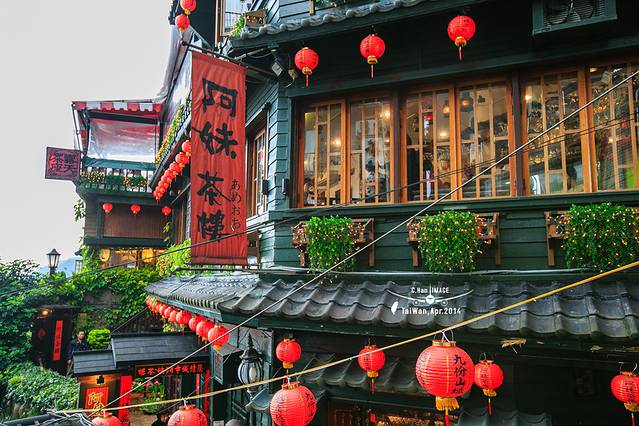 在九份,依山傍水的小镇,同千与千寻品茶闲憩;