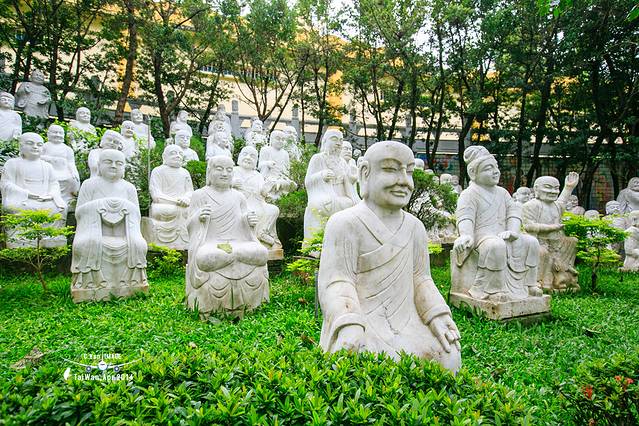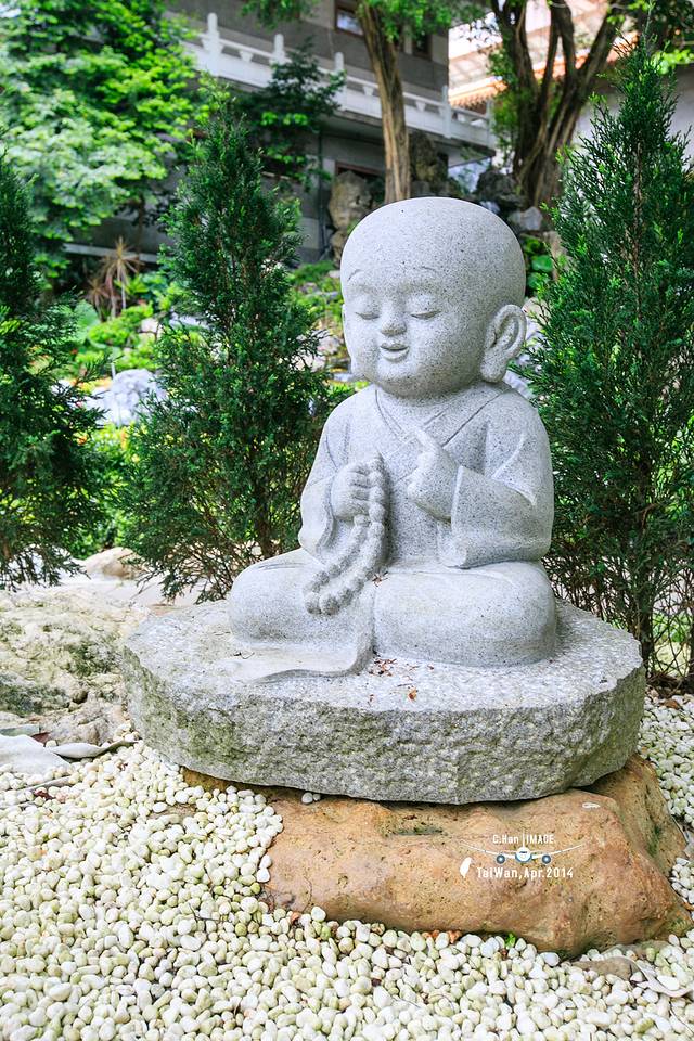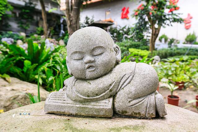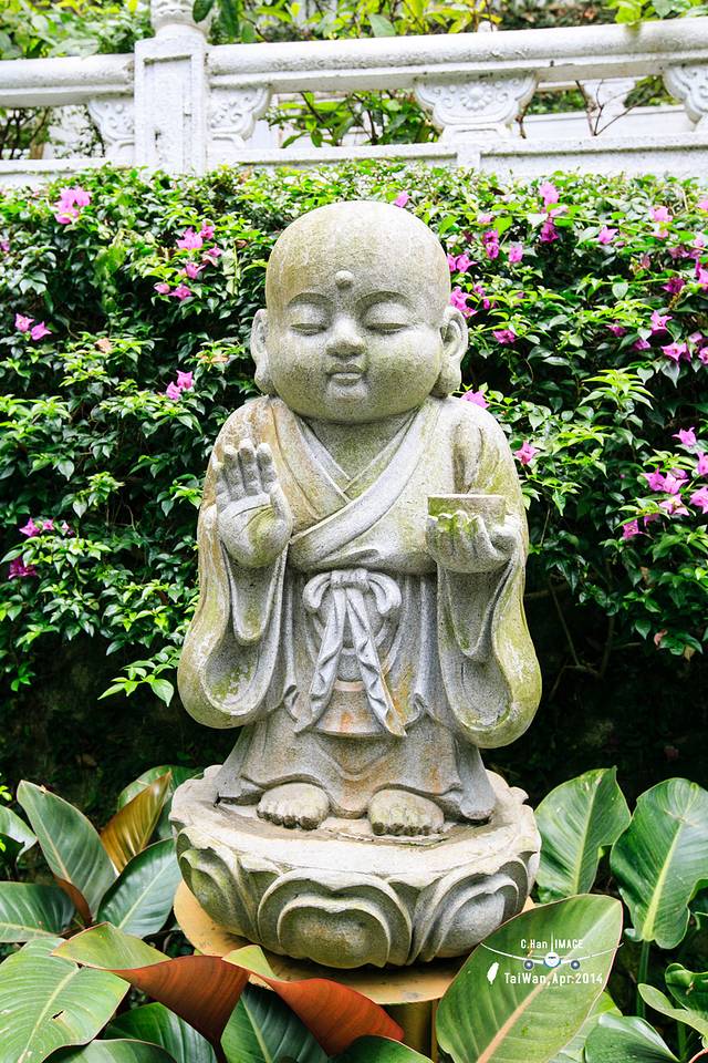 吃饭后到院中的小花园休息片刻,园中摆放着很多小沙弥的造像,憨态可掬,煞是可爱。