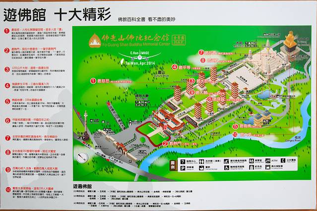 坐电瓶车便来到了佛光山另外一处浏览区:佛陀纪念馆。佛陀纪念馆坐西朝东,占地总面积100公顷,“前有八塔,后有大佛,南有灵山,北有祇园”。