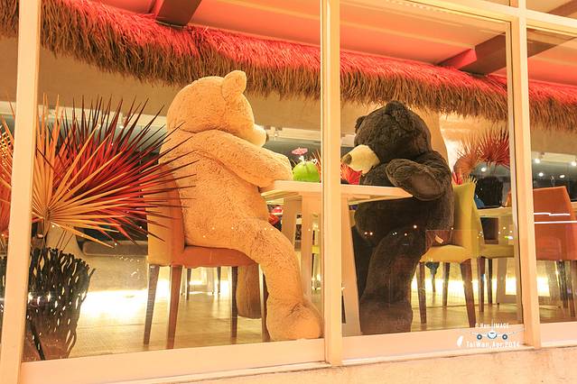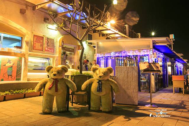 渔人码头这里,大熊毛绒玩具成了这里的标志,至少我看到两家店都是用这个用标志。台湾这里真的挺有意思的,九份的猫,垦丁的狗,淡水的熊。