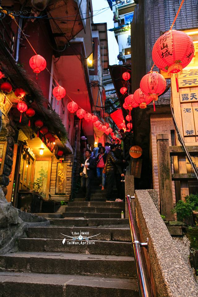 华灯初上,九份慢慢的暗了下来,各处的灯笼陆续点亮,九份最美的时候来到了。看着人头攒动,不断穿梭在九份的小巷中,熙熙攘攘。