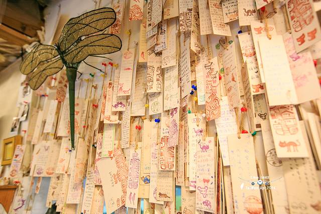 在九份可以说,是猫的天下。到处可以看到咪咪,而且小的摆设、小的挂饰很多都是咪咪的造型。其中,有一家“三猫小馆”里面都是用猫做形象的东西,来了可以逛逛,尤其他的明信片。