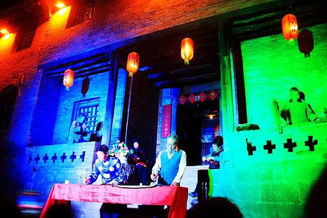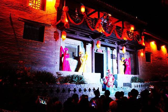 夜色中的古村,村道两边,灯火通明,霓虹闪烁,尤其三场古院落门前的实景小演出,群众演员,浓郁乡情,山西风味,别具特色,利用古建的门楼作背景和舞台,也是很有创意,对我来说,夜游古村,这还是第一次,感觉很新鲜。