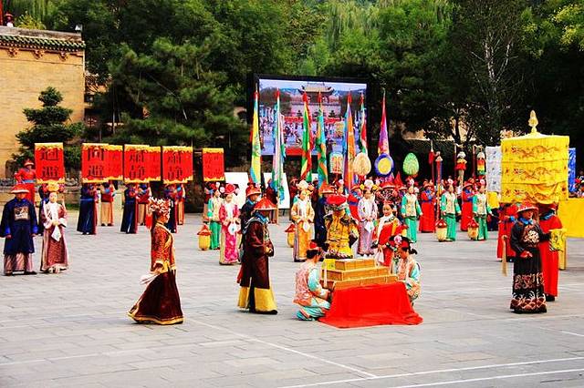 演出于下午3:00正式开始,逼真的表演再现了当年陈廷敬率家族成员,迎接康熙帝圣驾到来的内容,短短十几分钟的演出,就为将要进入相府古城参观的观众们交代清楚了相府主人的身份、他与康熙帝的关系、康熙帝的题词等背景情况