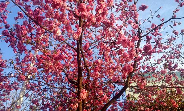 在路边的樱花树(第一次见,可是跟我想象中的有点不一样,跟日本的樱花一样吗?)