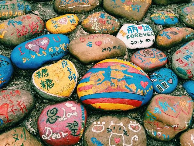 很美的石头墙,涂鸦鲜艳,上面当然就是我爱你你爱我的虐狗文啦