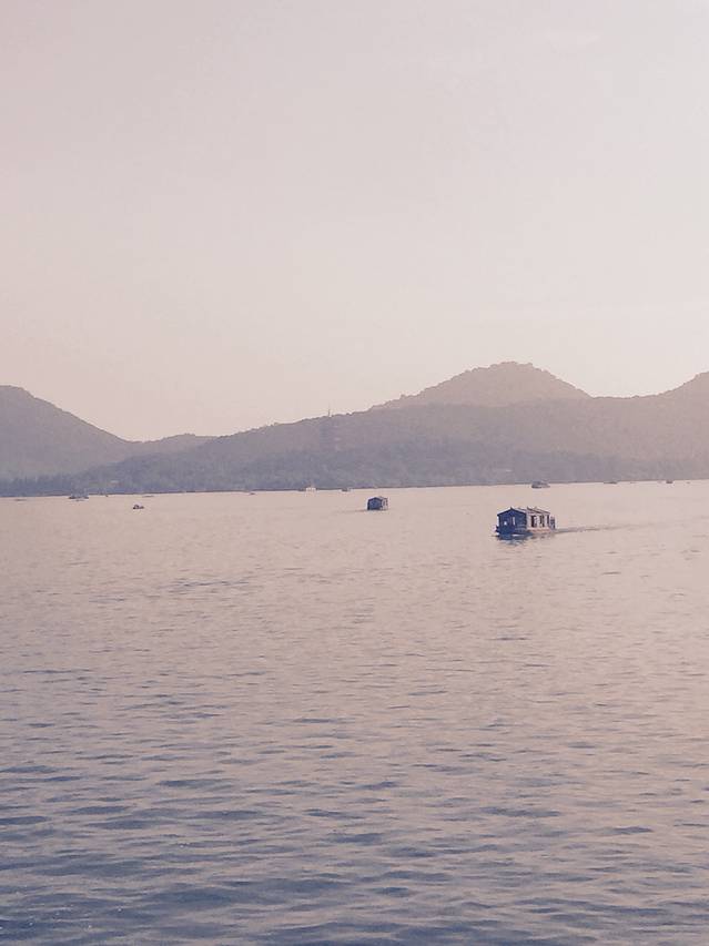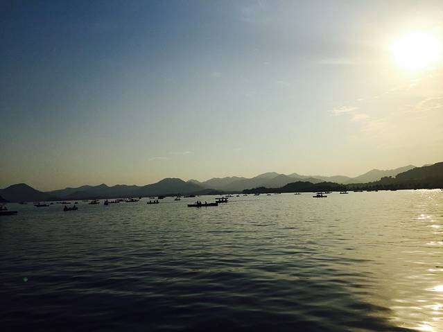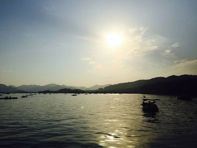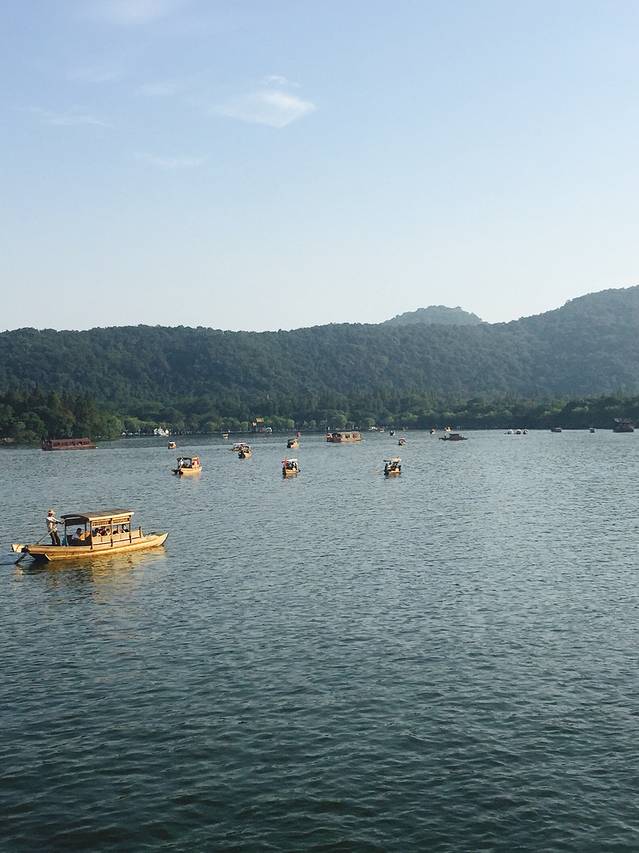 三三两两泛舟湖上。