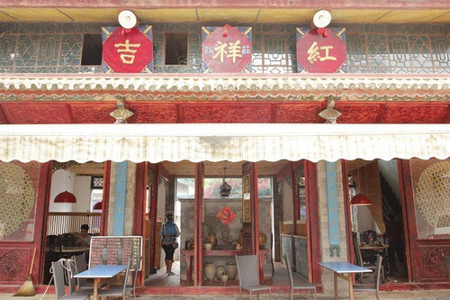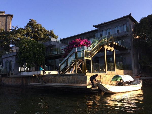双廊没有什么景点,大部分是客栈和民居。图中是杨丽萍的太阳宫和月亮宫,紧挨的这一片都是高级客栈,价格当然也不菲。