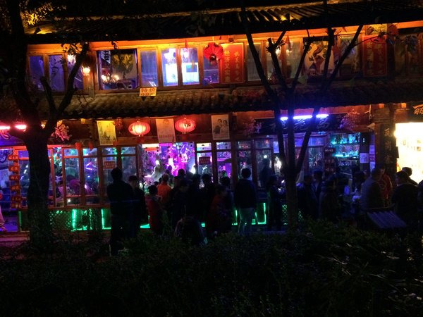 当然,还有很多人,坚持着自己的个性、自己的安静和自己的音乐,那么你可以选择而身藏古城偏僻巷子中在个性火塘酒吧,可由客栈老板带去。在那里可以沉浸在自我的世界里面。又或者,你也可以选择在路边那那些即兴歌手一起歌唱、一起舞蹈。无论你选择什么方式,都可以在这里忘记一切烦恼,度过一个愉快的夜晚。