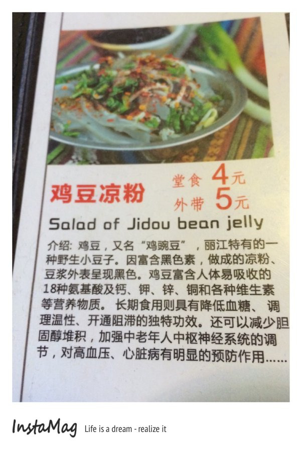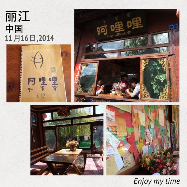 古镇里吃过几餐,印象都是贵且不好吃,唯独“阿哩哩小吃”是个例外。它是一家有特色的小店,环境装饰的也很不错,而且物廉价美强,我们吃了两餐,强烈推荐。就在面对木府门口的左侧巷子里面,即在客栈通往木府的路上。