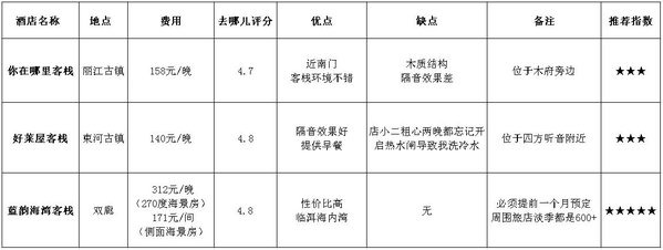 为图方便,大宝哥一早就在去哪儿网上将住宿的客栈全部预定好了。但其实11月份恰逢淡季,丽江的古镇内很多客栈都是有空房的。如果不赶时间可以在古镇里面慢慢逛,慢慢找,也别有一番情趣。网上选择没有现场选择多,但价格方面还是去哪儿网上更便宜,但亲临现场挑选更容易挑中满意的客栈。双廊的客栈也不紧张,但如果想住在靠近洱海的房子就必须要提前预定。千万不要选择木制结构的客栈,隔音效果超级差,隔壁说话或者楼上走路都听得一清二楚,很影响睡眠。