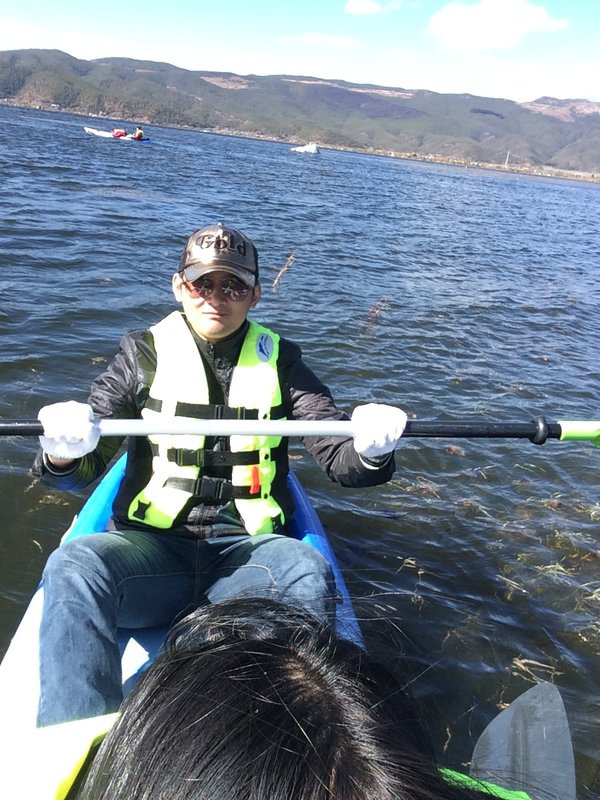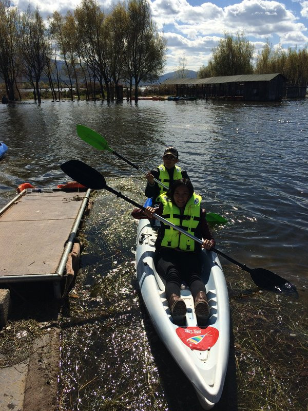 坐在木船上就是渔夫掌舵,纯欣赏风景,我们就可以自己掌舵,自由控制方向,特别有意思。很平稳安全,不会有翻船危险。