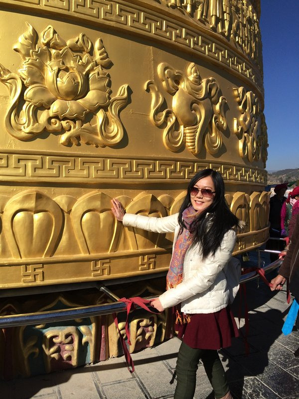 说是顺时针转三圈,可求万事平安。为了亲手转动转经筒,我坚持爬上去了长长的阶梯。