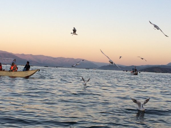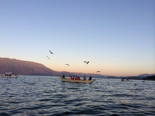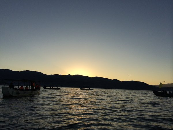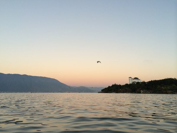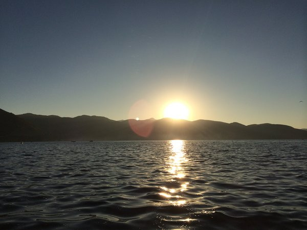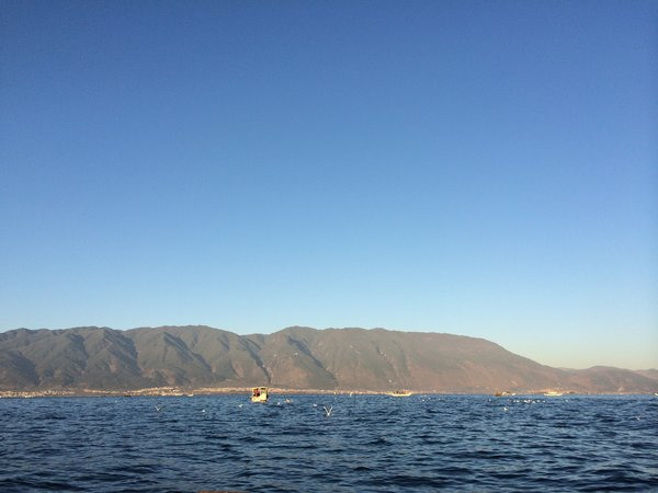 不同于海边的日出,因为苍山挡住的缘故,大概8点才能看见日出。清晨的双廊,海水温柔地拍打岸堤,宁静的只剩下海浪和自己的心跳声。我们坐在小木船上,远观苍山,静静等待第一缕阳光。
