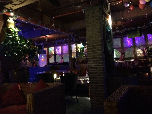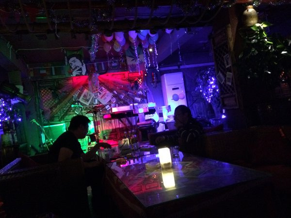 最热闹的地方就属酒吧一条街了,为了享受着安静的夜晚,我们选择了一家清吧,老板娘自己就是驻唱歌手,如果你有兴致,只要缴纳50元就可以上台有乐队伴奏唱一首歌。