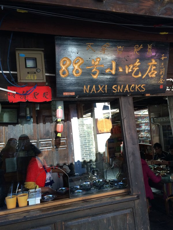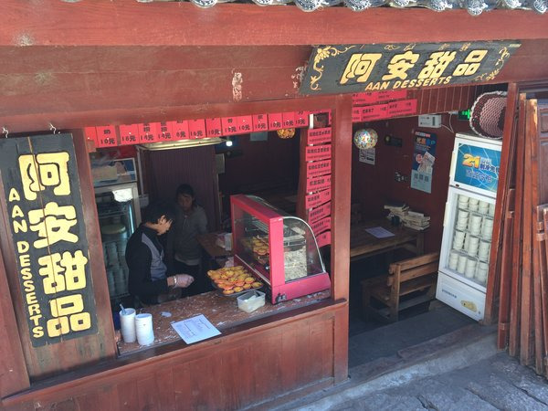 我们差点就错过它了,我们第一天到丽江古镇就导航“阿安酸奶”,结果导航找到的地方竟然是一家关门了的店,让我们误以为它已经倒闭了。但就在88小吃店附近我们竟然无意发现了它,在阶梯下方并不显眼。
