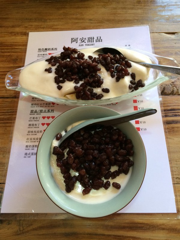 里面只有两张桌子,我们运气好无需等位。强力推荐红豆酸奶,简直太好吃了,我吃了两碗。