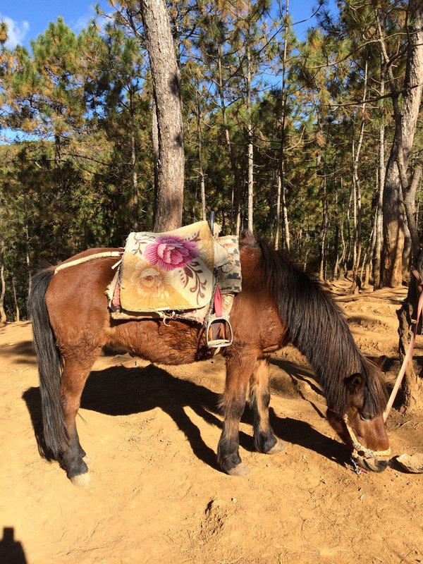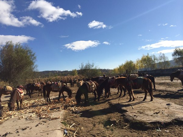 马夫看到大宝哥个头大,给他挑了一匹个头最高的马,就是这匹剪着西瓜太郎发型的小可爱。但却是马群年龄最小的马匹,三岁,我的马都十几岁了。大宝哥一听竟然骑了个童工,顿时紧张倍增,生怕这个小东西不听话把他甩下来,一路崩着弦。