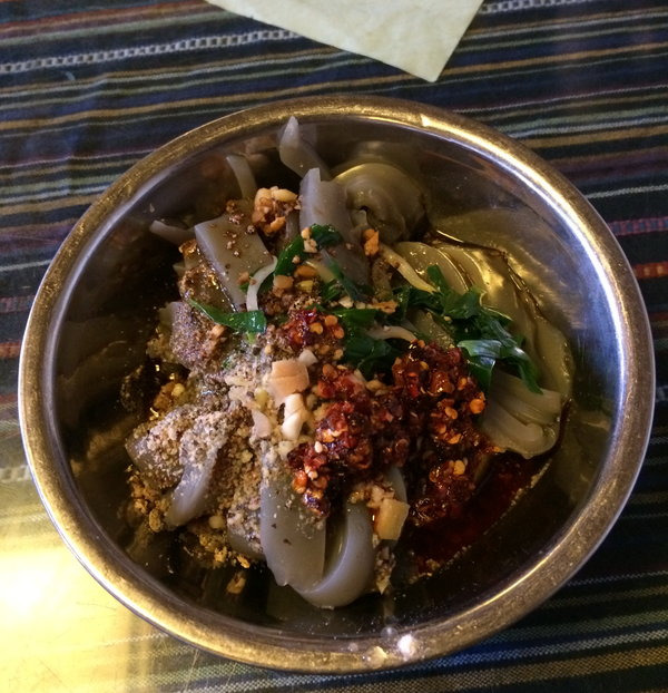 生鱼片+火锅真的超级赞,虽然价格是全程最贵的一餐。丽江的三文鱼不同于深海三文鱼,但鱼肉非常新鲜,强力推荐。