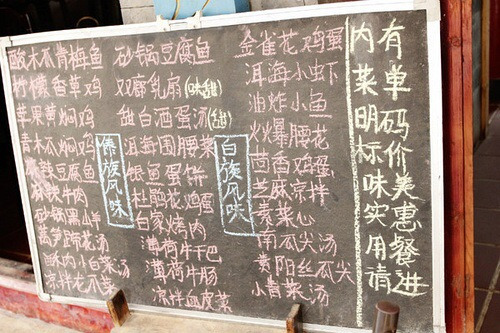 这是一家白族特色餐馆,在双廊的两日午餐我们都选择了这里。菜牌就是小黑板,很有意思。