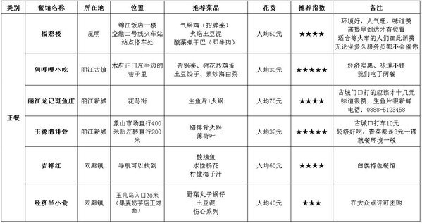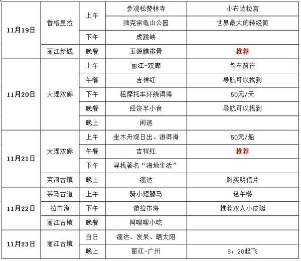 因为大理双廊是临时决定的,所以我们包了一辆面包车,丽江来回800元,如果先去大理再到丽江,可节约单程费用。返程是丽江直飞广州,包了一辆车去机场100元。游玩地方因为网上代理全部包接送,无产生交通费。