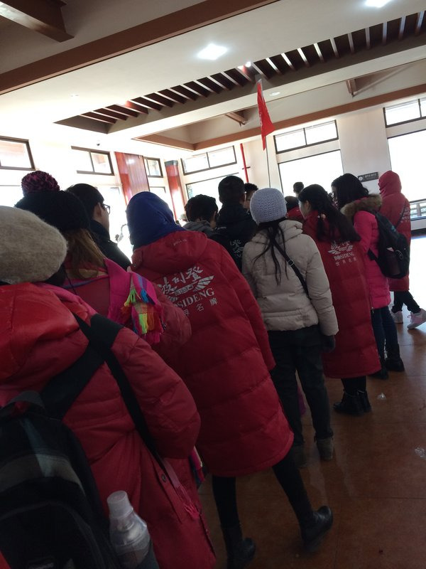 一早导游派车来接我们,每个人派发一瓶水、一件防寒服、一个氧气瓶和女士每人一张面膜,服务很周到。山上非常冷,一定要穿防寒服、羽绒服、戴上围巾、帽子和手套。我基本是把我最厚的衣服都穿上了,还是觉得冷。