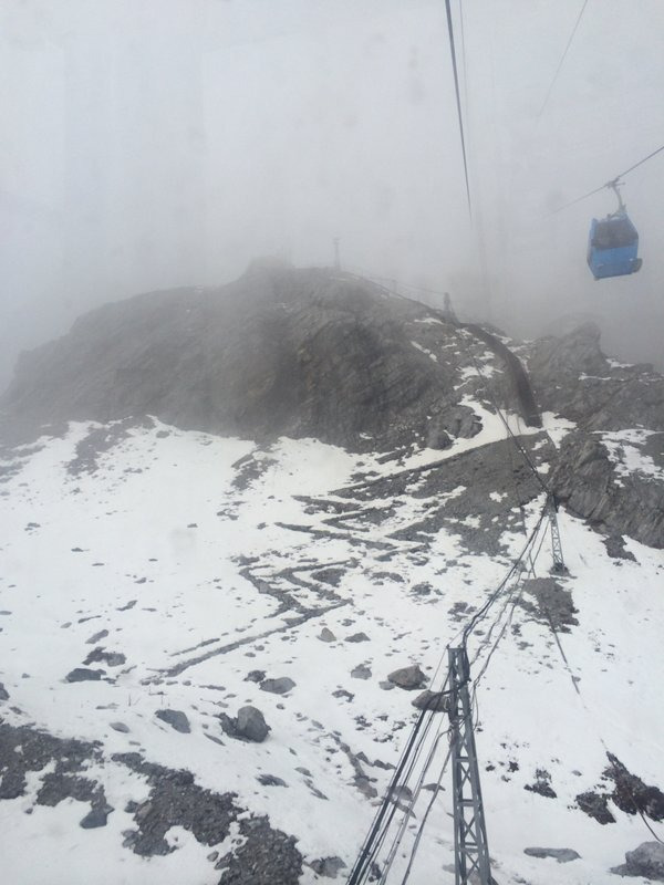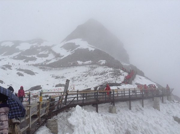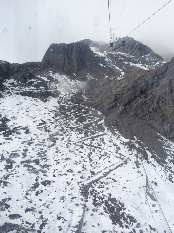 山上也是云雾笼绕。因为季节的关系,山上雪并不厚,但对于从未见过雪的我来说,还是很激动的。