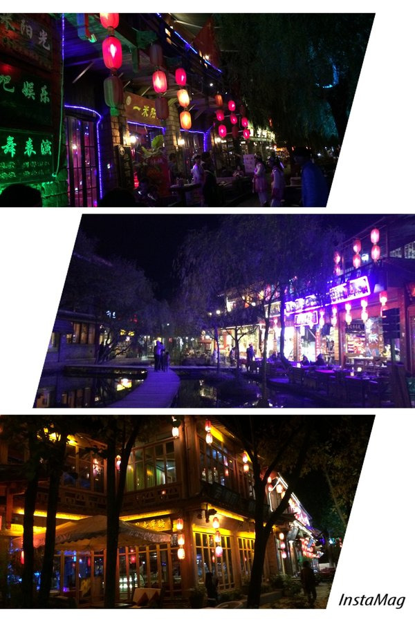 最热闹的地方就属四方街的酒吧一条街,灯红酒绿,光影流离。有人说:丽江就是一个艳遇他人或者等待被艳遇的地方,震耳欲聋的声乐中可以让你感受那种肾上腺素分泌的空气。艳遇之都赋予丽江的酒吧文化更深层次的意义。