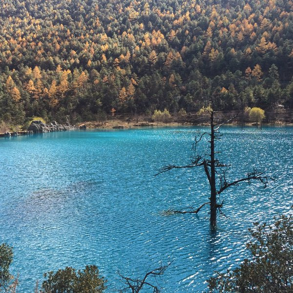 玉龙雪山下蓝月谷,碧光波澜,清澈见底,美的让人流连忘返。