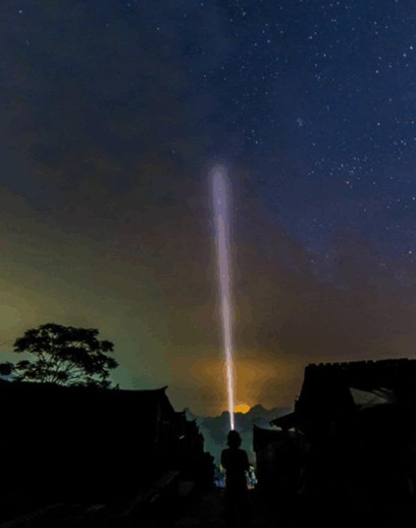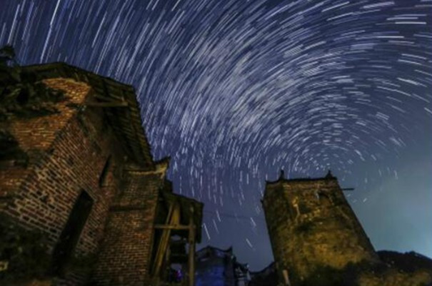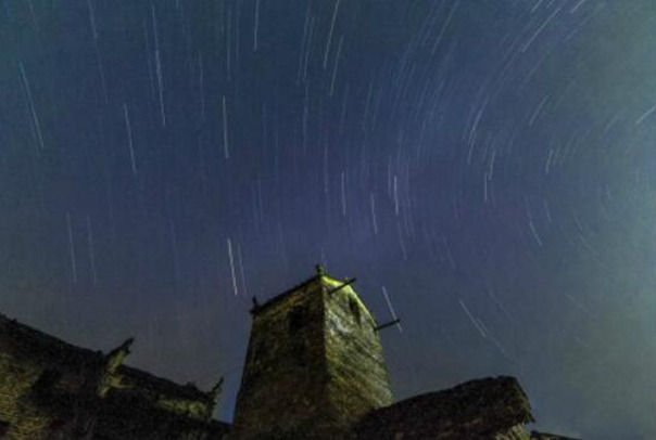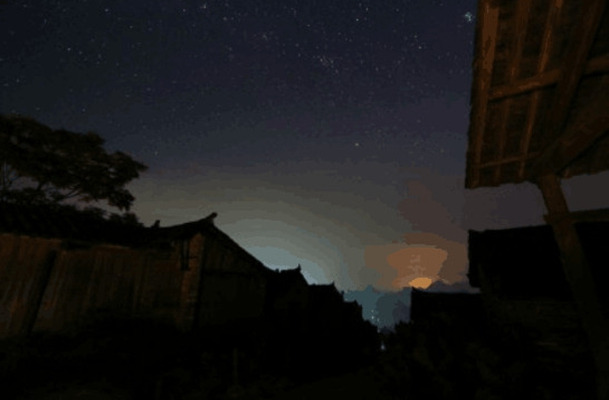 借助人工灯光与星空的相辅佐,恰如星辰中的曙光,照射着千年瑶寨,带领着瑶寨冲破黑夜的束缚,将要迎接着黎明的到来。