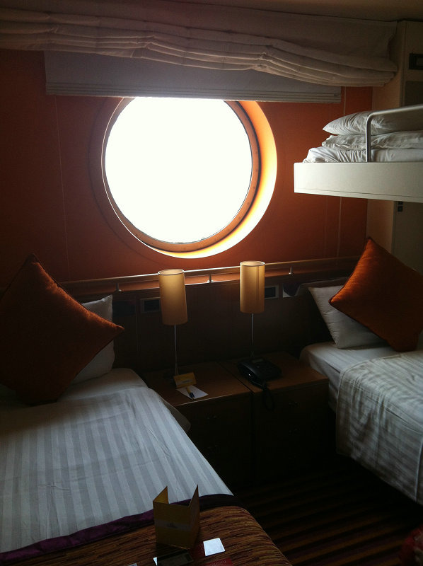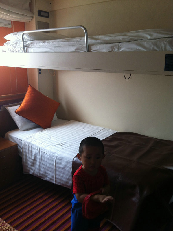 于是选舱房,本想选2件阳台房,但是我儿子只有2岁半,不放心他,最后选了2间海景三人房,我爸爸妈妈和我侄子一间,我们一家三口一间。。