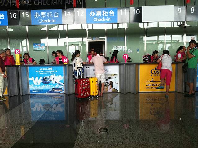 已经有人在排队托运行李了。我们赶快去找领队那吊牌和护照和行李牌。