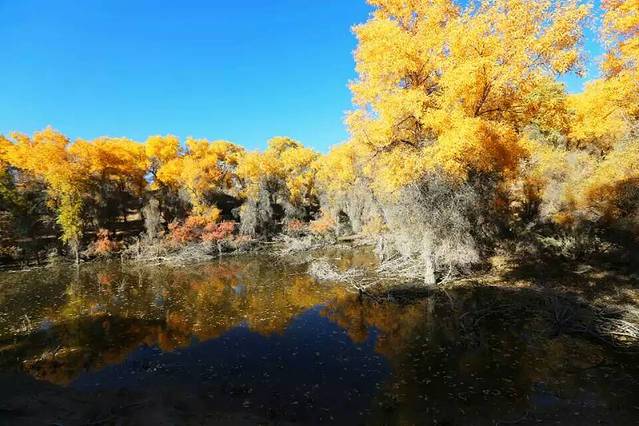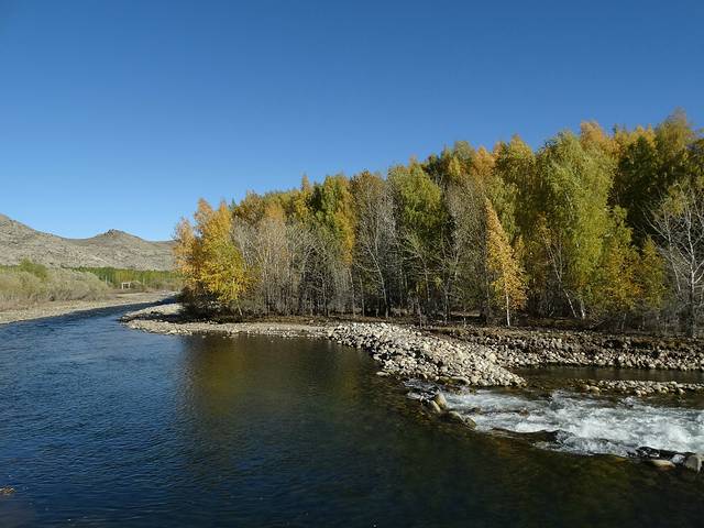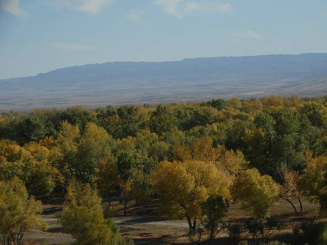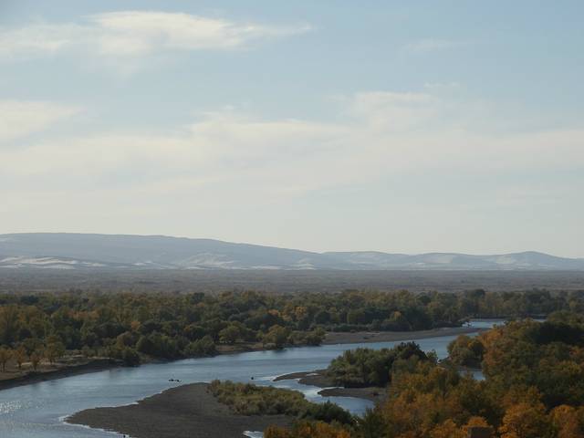 我们赶往原始胡杨林。这个胡杨林应该很少人去。因为它脱离北上的国道,向内蒙那边,直逼外蒙边界,但是听说最原始的胡杨林。值得一去,但是代价不一般,因为司机第一次去,为了不走回程路,结果遇上了拉煤的路,几百公里凹凹凸凸,整一天700公里的行程,赶路到晚上1点多。