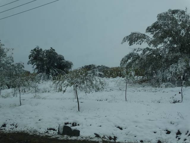 秋雪裹绿枝