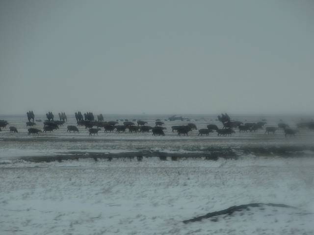 第一次看到那么广阔的大地,第一次看到马群,第一次看到骆驼群,第一次看到大屁股羊,第一次看到雪山,第一次看到戈壁,第一次看到桦树,第一次看到野马,第一次看到雪景(真的!),第一次领略零下温度,第一次在高速上几百公里无人区,第一次看到胡杨林,第一次看到发电风车。