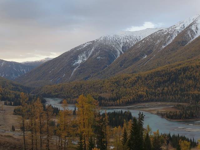 喀纳斯必去的地方就是观鱼亭。但是阴天,阴天啊!!!技术根本拍不了阴天,没了蓝天,喀纳斯哪里还是喀纳斯啊!