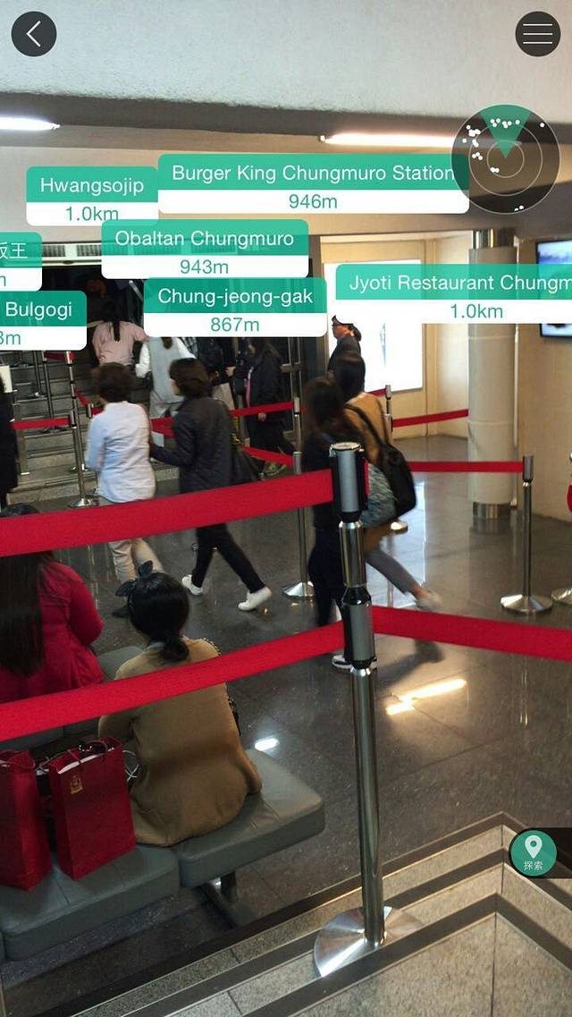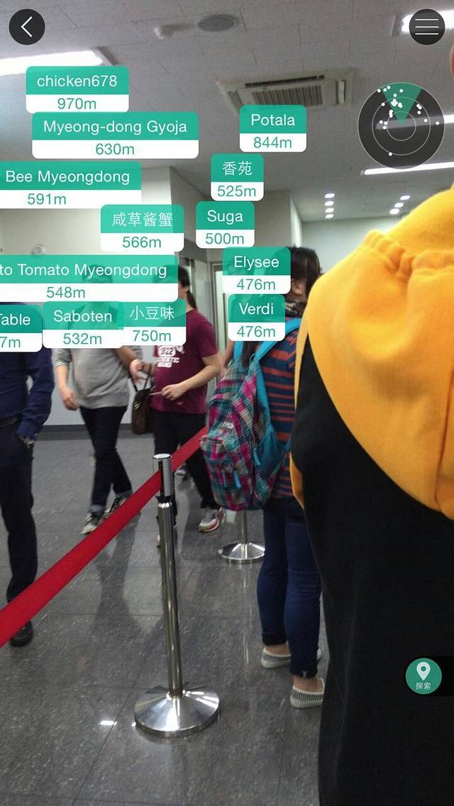 随便走APP的界面就是这样的,你点击美食标签,举起手机,就会弹出立体的标签,点击绿色的标签,就可以知道这家的价格、距离、评论,可以看到很多国人很多评论哦,完全没有语言的障碍。超赞,所以我总是能吃到口味很不错的美食。而且去到的景点都知道门票价格都是多少~心里都是有底的。