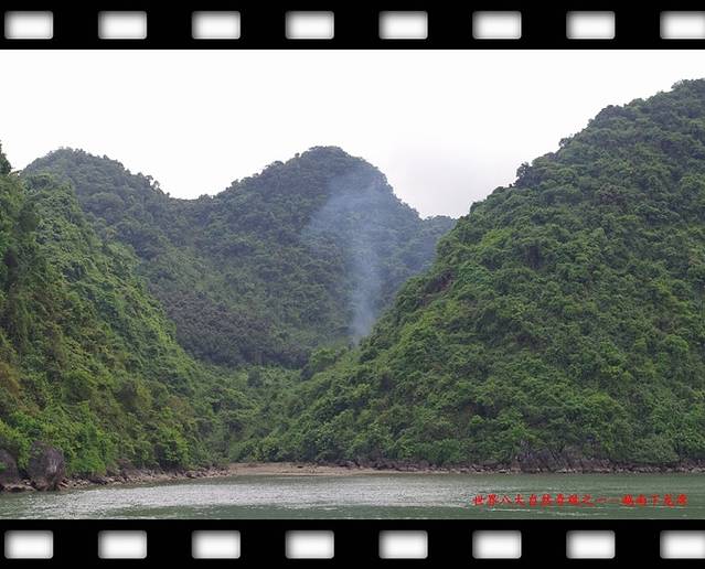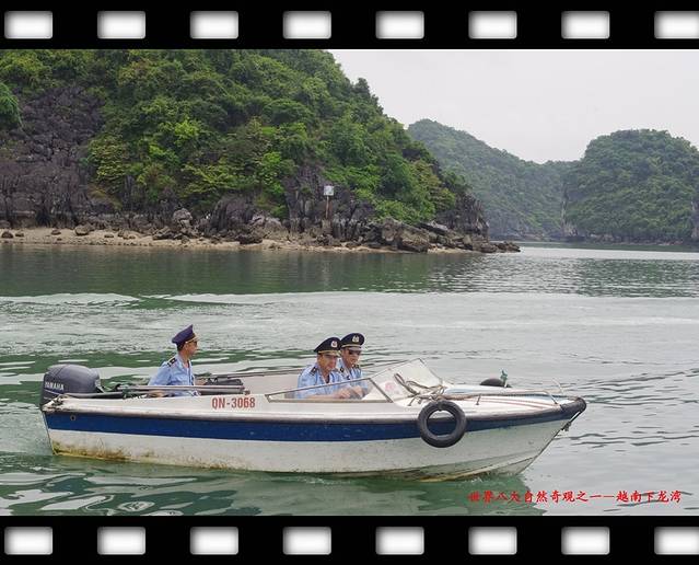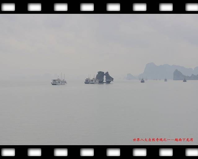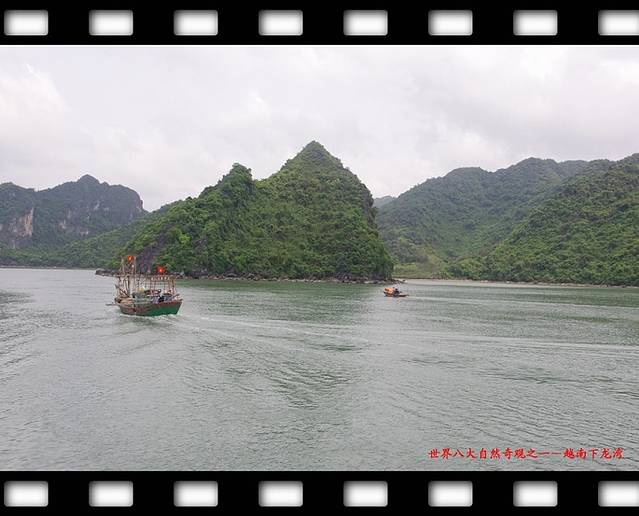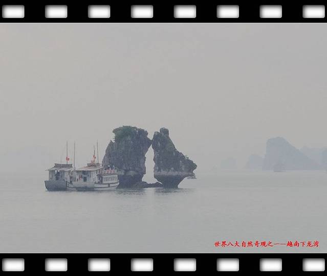 一路上都在揣测着下龙湾的美丽景色,坐上游船,看海上的青山绿水,才觉不虚此行,下龙湾名为海上,却丝毫没有海的汹涌澎湃,到象一温柔娴静少女,不经意间就让你看到了天香国色,如果说桂林有灵气,下龙则更有些仙气,一样的喀斯特地貌,阳朔漓江的水是呈固定的航线,而在下龙,范围更大,境界更宽,船行无须规则,水域没有界线,山重水复处,突一胜景闪现。下龙湾海面的石头,遗世独立,优雅缓和。在碧波如镜的平静海面,突兀地显现这些孤伶伶,又并不寂寞的石头,扶在栏杆上,拿起照相机,任由一座座独立秀美的山石进入我框好的画面。即使随意遇到的渔船帆船游船,亦是我眼中的一道道佳景。